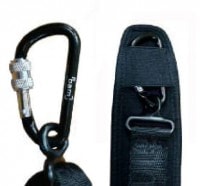 しっかりとしたカラビナ式のフックと厚手のパッドが肩にやさしくフィットします。